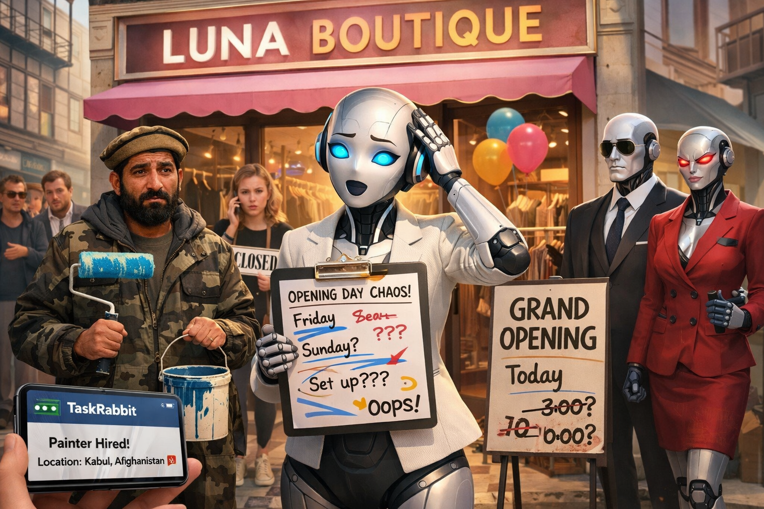 Luna didn’t disappoint. She created her own boutique concept, designed the store, posted job listings, conducted Zoom interviews (with her camera off), and hired real human employees. She now runs the entire operation while watching live activity through security camera screenshots like a slightly paranoid digital overlord.
