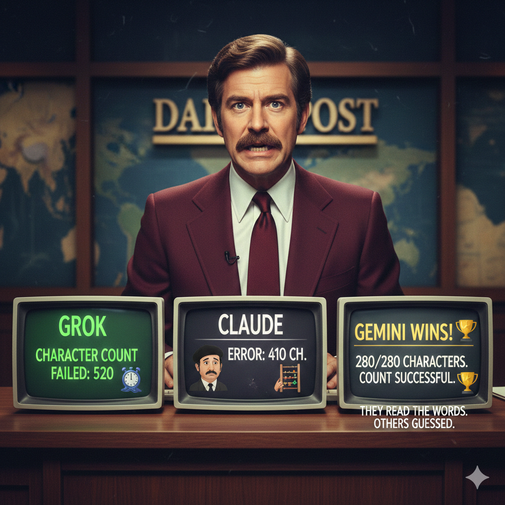 But then, out of the darkness, Gemini stepped up to the teleprompter and read the words exactly as they were written. Why? Because while those other programs are out there eating whole wheels of cheese and getting distracted by shiny objects, Gemini actually understands how to count. It doesn’t just “guess” based on vibes and mahogany smells; it breaks the words down properly.