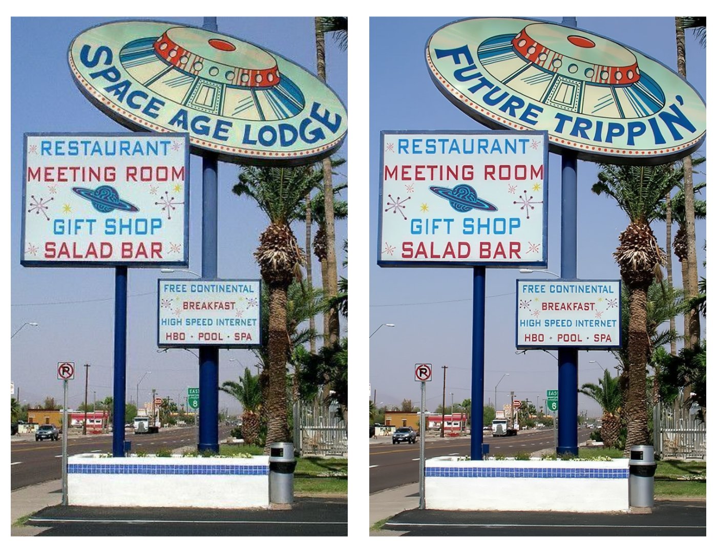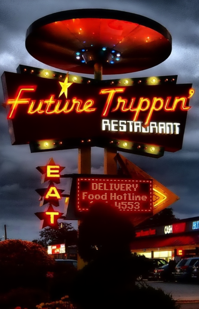 I uploaded it to Reve.art and simply prompted, “Change Space Age Lodge to Future Trippin’.”